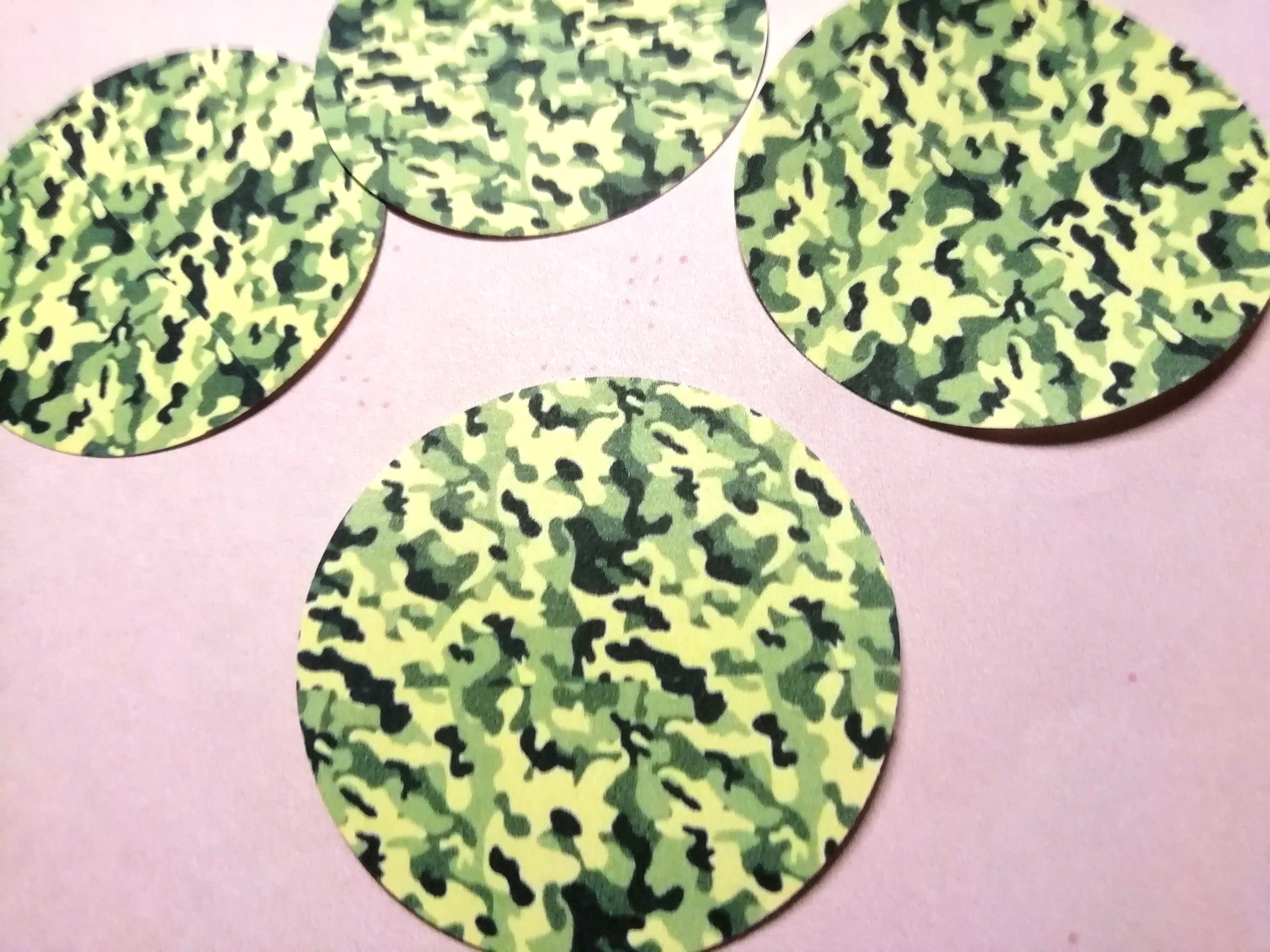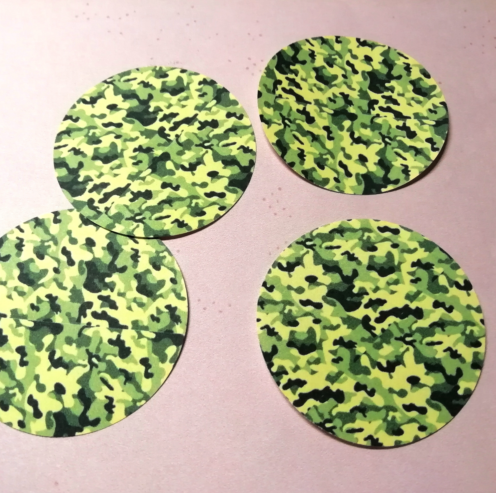 Съедобный декор, украшение для тортов и выпечки, вырезанные кружочки для капкейков, топперов, леденцов из сахарной бумаги Светлые Камуфляжные на 23 Февраля. Диаметр - 5 см. Количество - 12 шт. Вкус - сладковатый