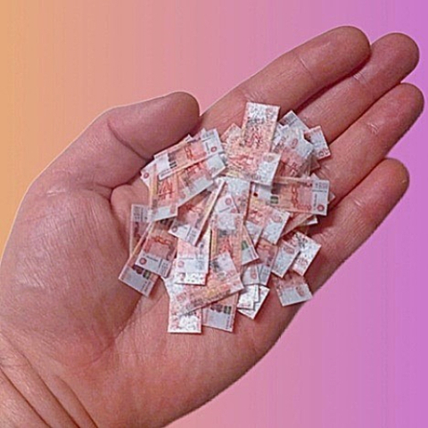 Съедобное украшение из сахарной бумаги для тортов, пряников, капкейков, пирожных, денежная "сахарная" посыпка "Микро-денежки 5000р". Размер - 2.5*1 см. Количество - 160 шт. Цвет: Рубли России. Сладковатый вкус. Присутствует лёгкий ванильный аромат. Купюры - односторонние (лицевая сторона).