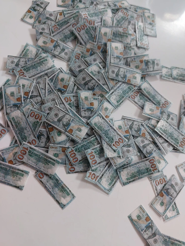 Съедобные украшения для торта из вафельной бумаги, денежная "вафельная" посыпка для тортов, капкейков, пряников, пирожных "Микро-денежки 100 Долларов". Размер - 2.5*1 см. Количество - 160 шт. Купюры - двусторонние (обратная сторона тоже окрашена). Толщина вафельной бумаги - 0.3 мм. Цвет: Дизайн Доллары США. Вкус - нейтральный.