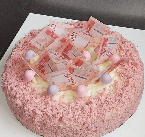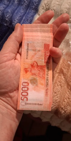 Съедобные украшения для торта из вафельной бумаги "5000р Нового Образца Двухсторонние". Размер - 10*4 см. Количество - 12 шт. Купюры - двусторонние (обратная сторона тоже окрашена). Толщина бумаги - 0.3 мм. Цвет: Дизайн Рубли. Вкус - нейтральный.