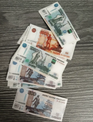 Размер - 10*4 см. Количество - 12 шт. Купюры - односторонние (обратная сторона белая, естественного цвета вафельной бумаги). Толщина бумаги - 0.3 мм. Цвет: Дизайн Рубли. Вкус - нейтральный.