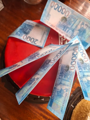 Съедобные украшения для торта из вафельной бумаги "Деньги 2000 рублей". Размер - 14*6 см. Количество - 6 шт. Купюры - двусторонние (обратная сторона тоже окрашена). Толщина бумаги - 0.3 мм. Цвет: Дизайн 2000 руб. Вкус - нейтральный.